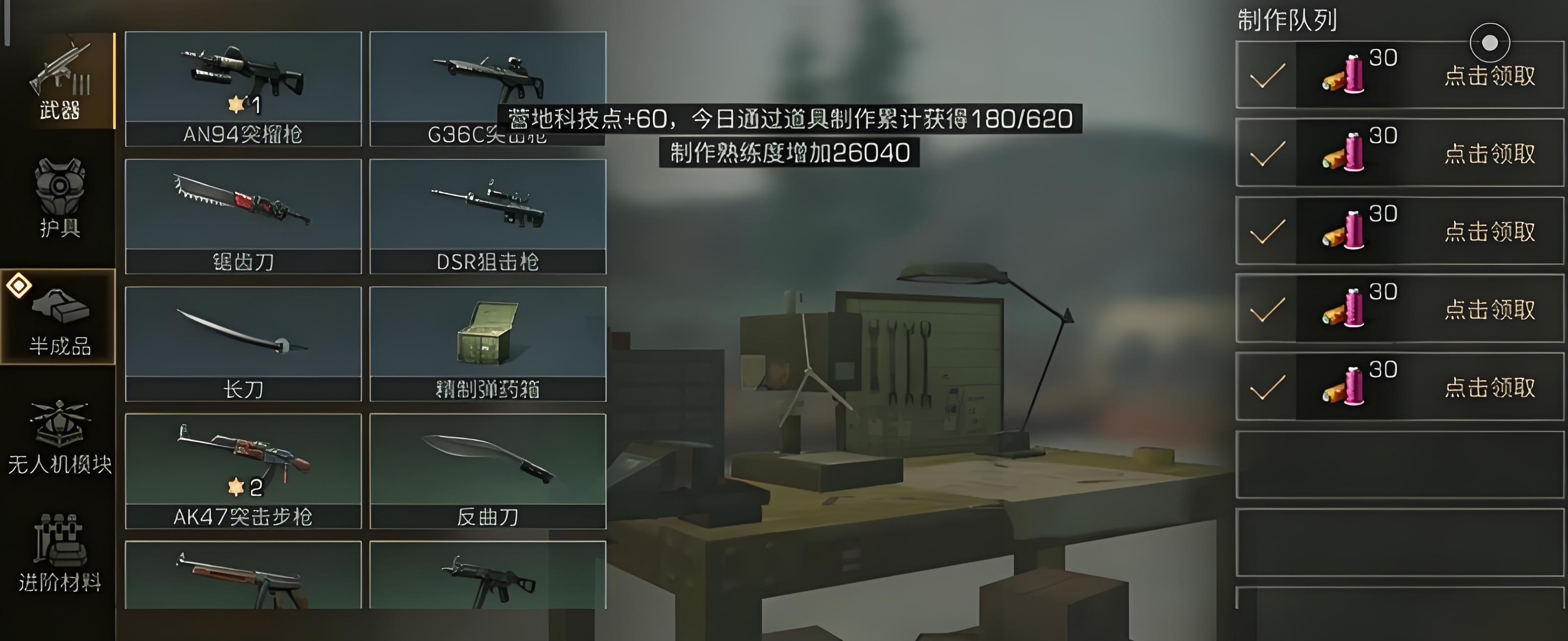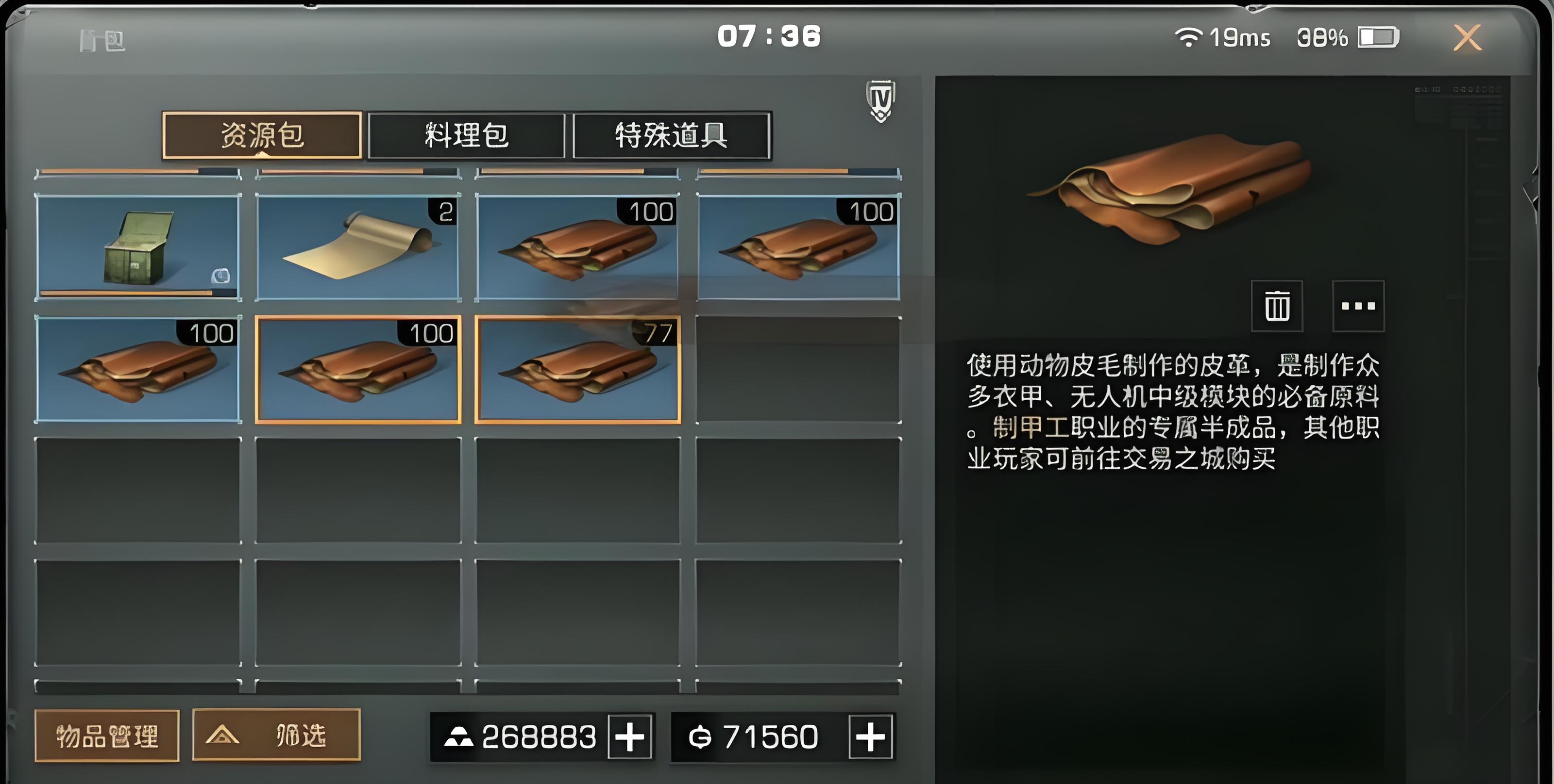 4、自制需制作熟練度達30級,之后在家中裝備制作機放入四種材料,按照對應配方操作就能成功產出皮革滿足使用需求。