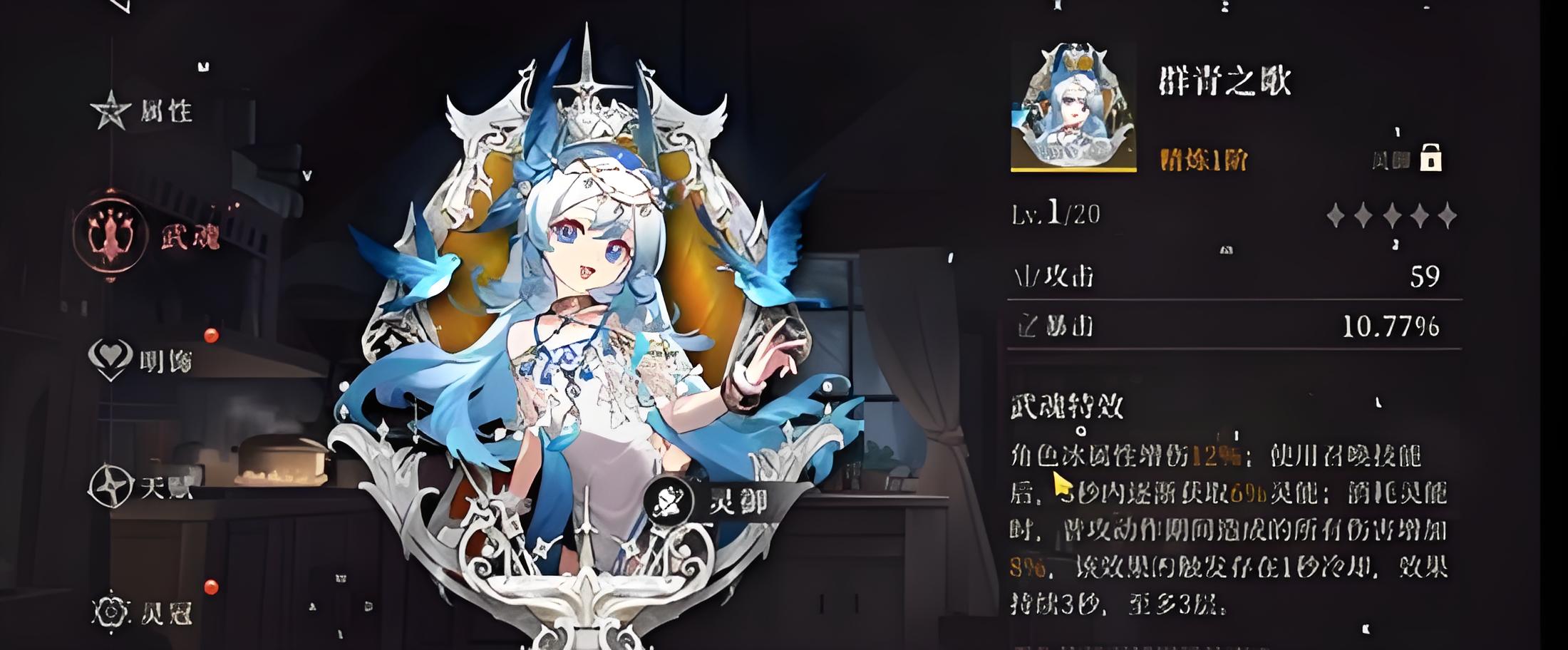 1、核心武魂選群青之歌這一專屬搭檔,能契合靈能輸出機制,提升靈能獲取效率且三技能耗靈時增傷,確保輸出節奏穩定。