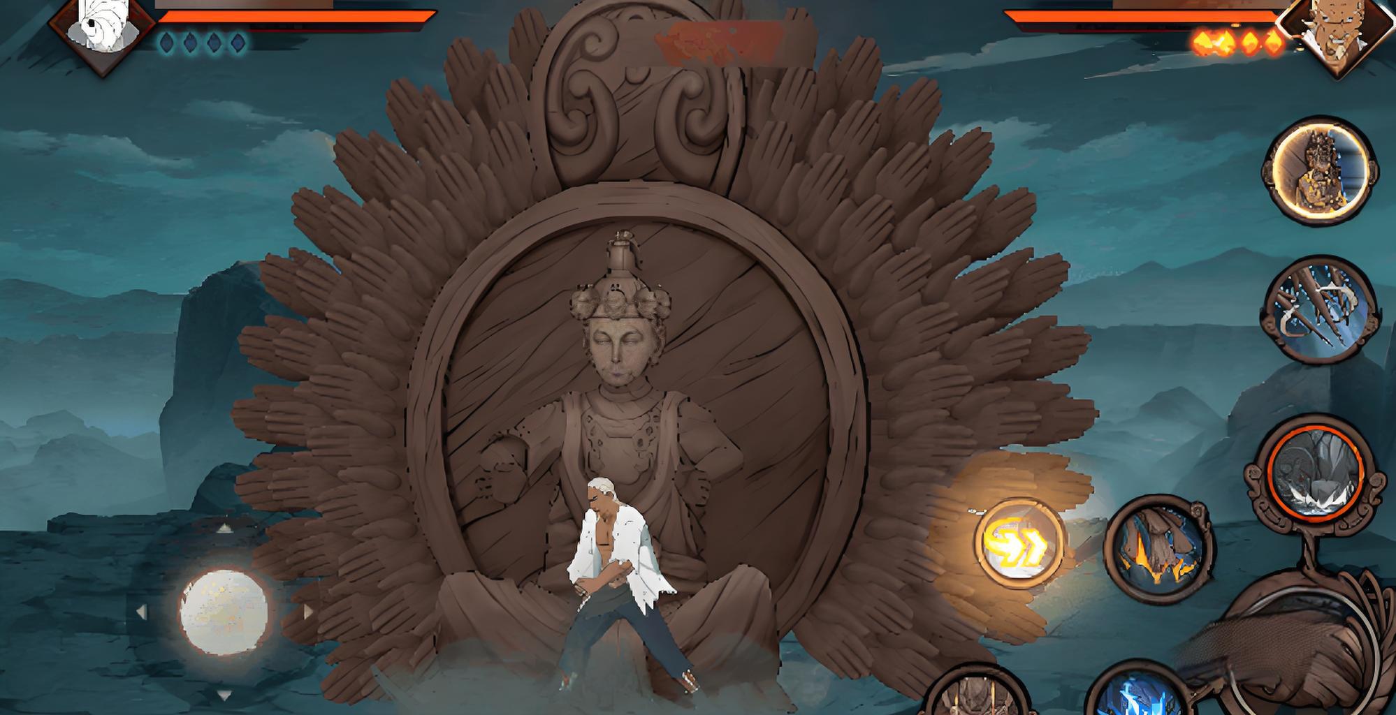 1、以大佛形態保持金剛體,血條下為虛弱條,受擊積累不受擊減少,積滿進入無法操控且增傷的虛弱狀態。