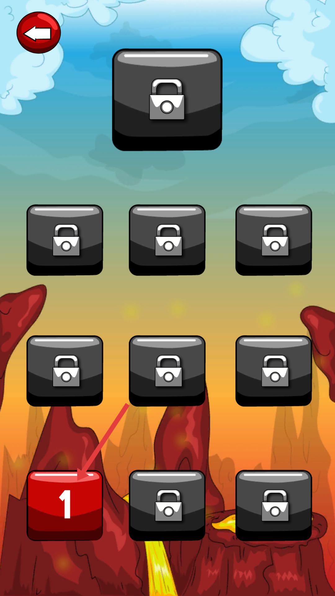 2、進入關卡選擇界面后,點擊紅色標有1的方塊,選擇第一關,開始游戲冒險。