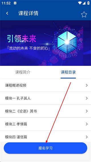 2、在課程詳情頁面查看課程簡介了解課程內容,點擊報名學習按鈕,完成該課程的報名。