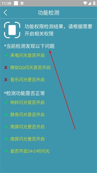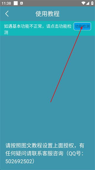 2、在使用教程頁面若遇功能異??牲c擊功能檢測按鈕,進入功能檢測頁面,查看各項功能權限的開啟狀態及檢測結果。
