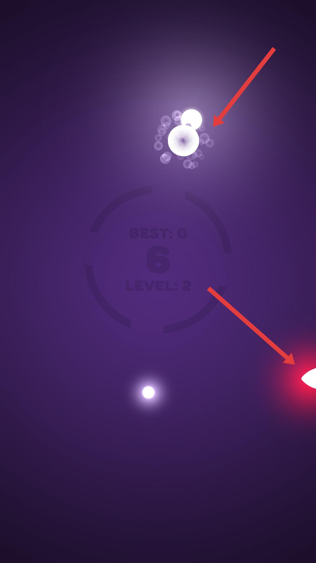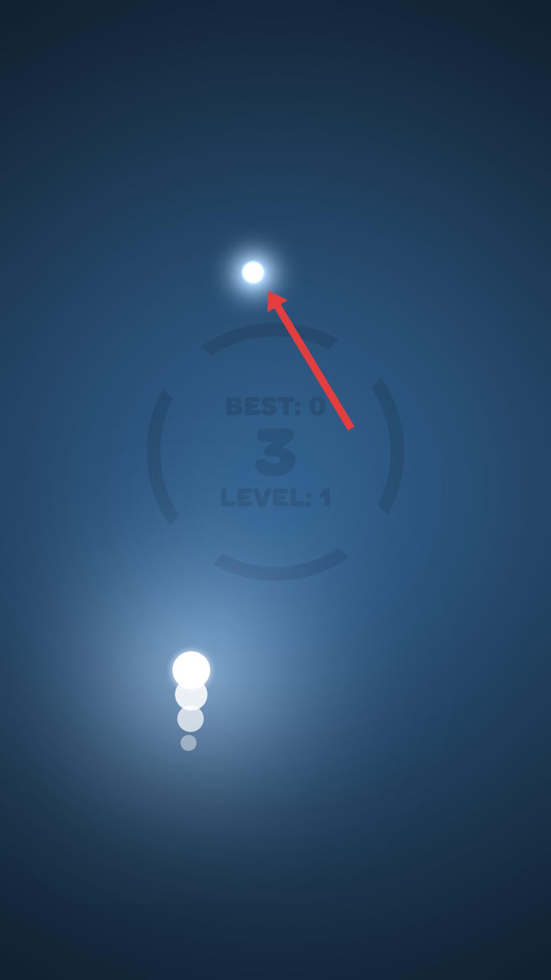 2、游戲開始小球需向上移動,朝著上方發光的小球目標前進,通過手指滑動控制方向,精準移動,靠近目標。