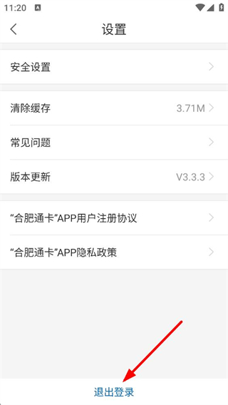 4、設置界面,可進行安全設置、清除緩存、查看常見問題和版本更新,也可查看用戶注冊協議和隱私政策,點擊退出登錄可退出賬號。