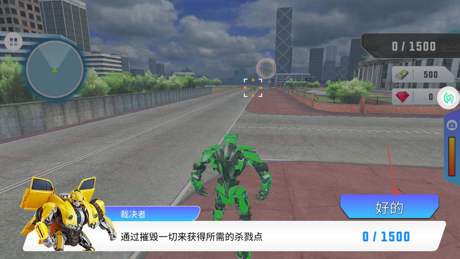 4、進入游戲后,會出現任務提示,點擊好的,操控機甲在城市道路等場景行動,完成摧毀目標獲取殺戮點的任務。
