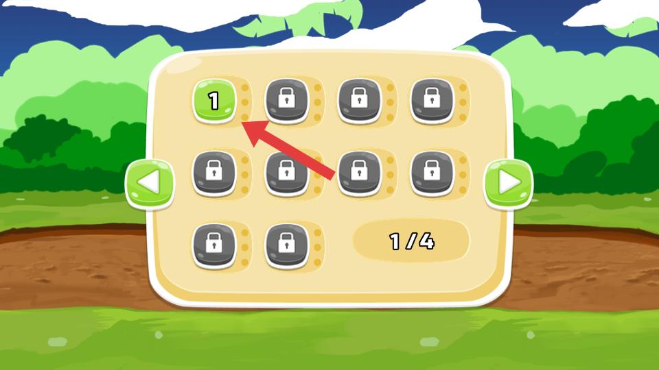 2、進入后可選擇關卡,能看到標有數字1的可玩關卡,還有其他帶鎖的未解鎖關卡,從可玩關卡開始游戲。