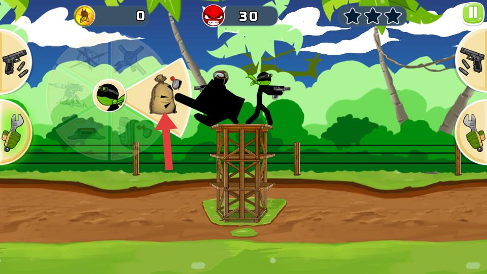 4、進入關卡后,操控火柴人利用武器攻擊敵人,還能使用道具輔助防御,努力擊敗敵人,完成關卡目標。