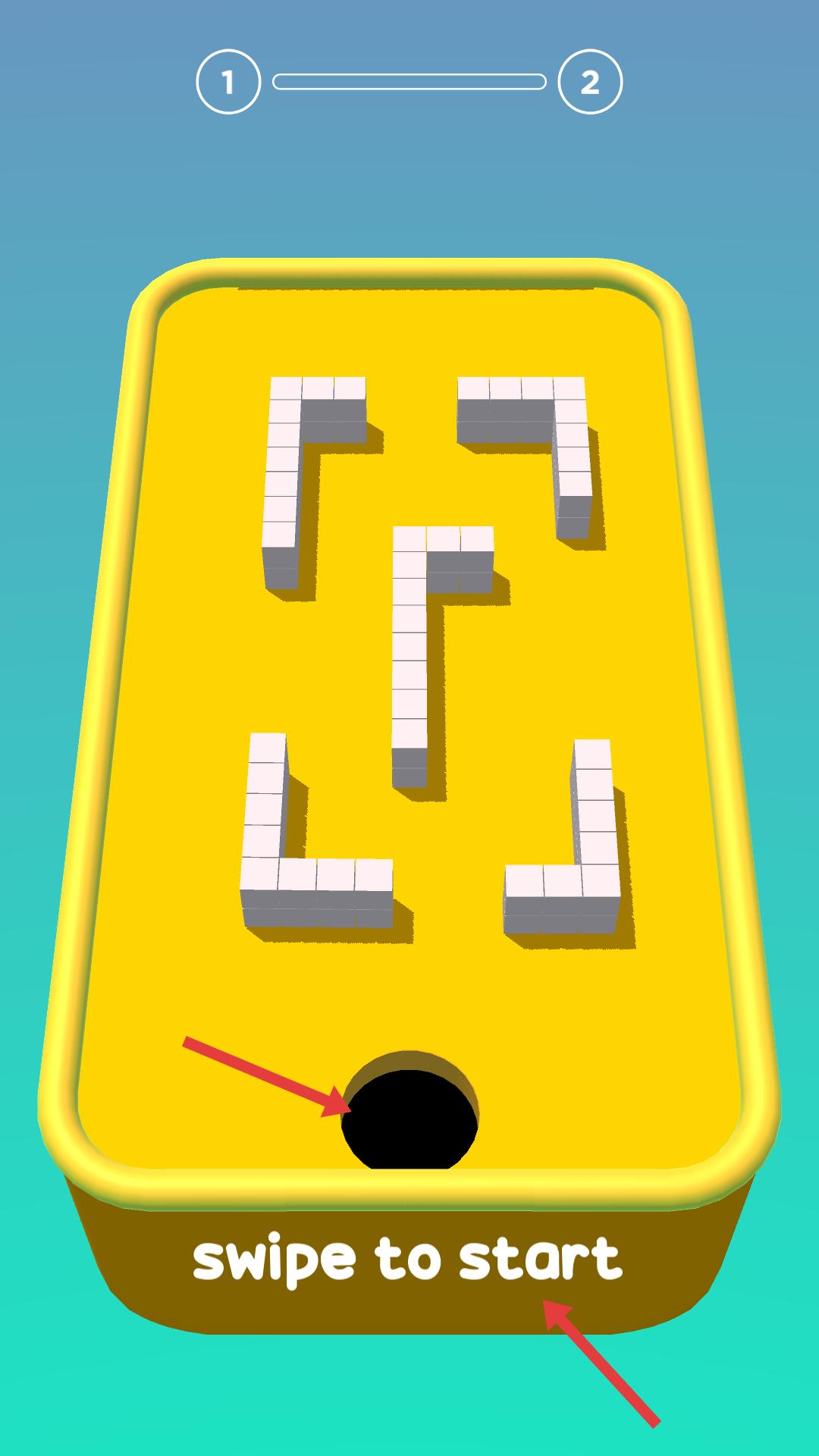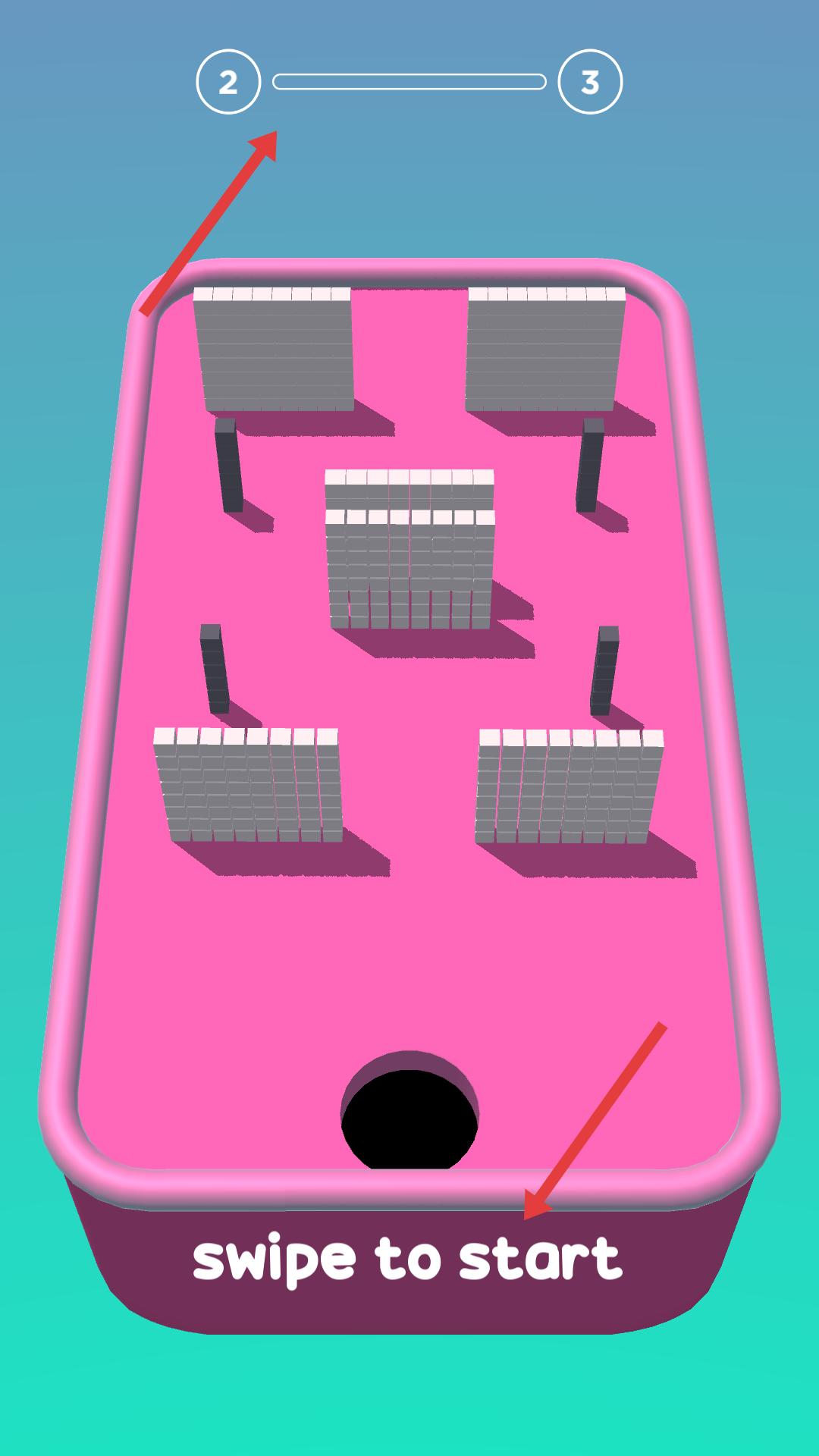 4、新關卡界面背景變為粉色,同樣有滑動開始的提示,滑動屏幕啟動黑洞,仔細觀察新關卡的白色方塊分布,提前規劃好黑洞的移動路徑。