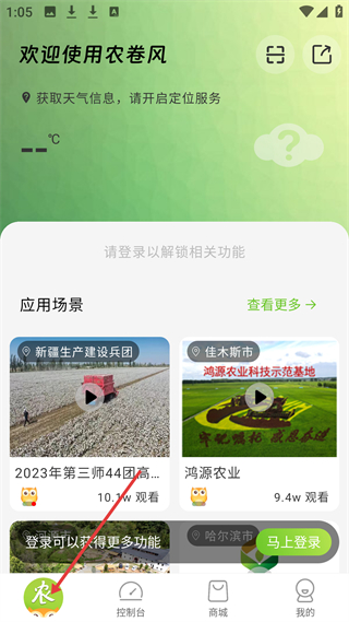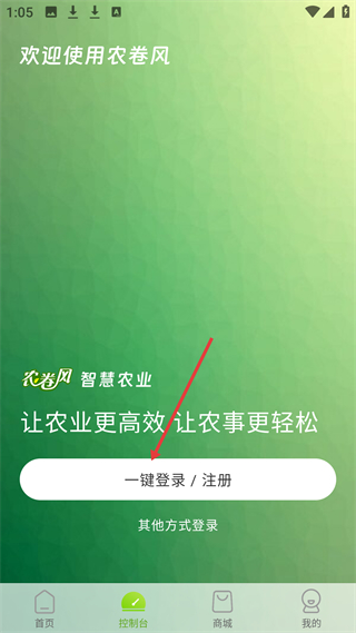 1、登錄注冊板塊,提供一鍵登錄注冊方式,也可選擇其他方式登錄,宣傳智慧農業理念,讓農業更高效、農事更輕松。