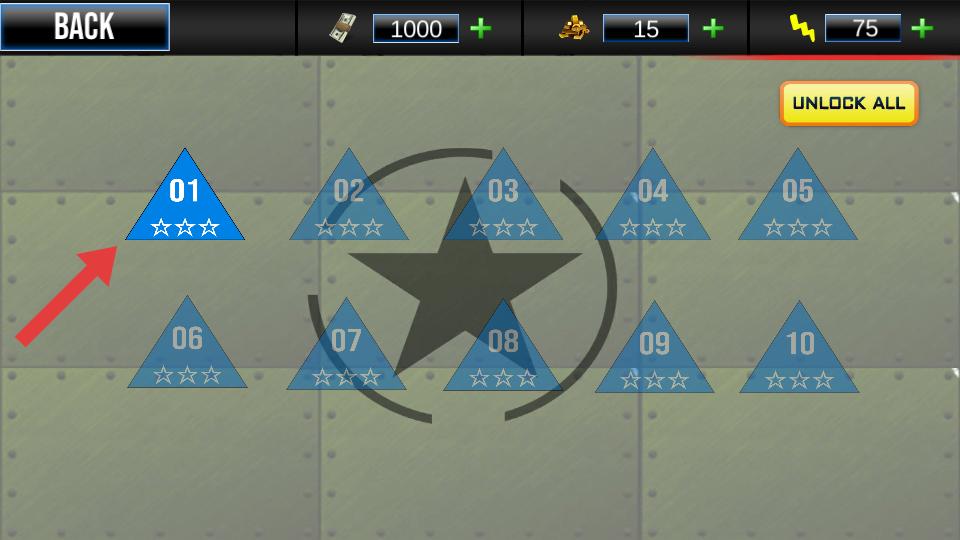 2、在關卡選擇界面,有多個帶編號的三角形關卡標識,選擇想要挑戰的關卡,進入該關卡的戰斗場景。
