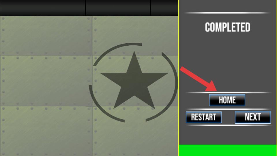 4、成功完成關卡后,會顯示COMPLETED界面,此時可選擇HOME返回主界面,或NEXT挑戰下一關。