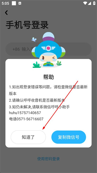 4、若登錄遇到問題點擊需要幫助可查看幫助信息,如出現登錄錯誤可檢查微信是否最新版本、確認APP是否最新版本,還可復制微信號聯系呼呼小助手解決。