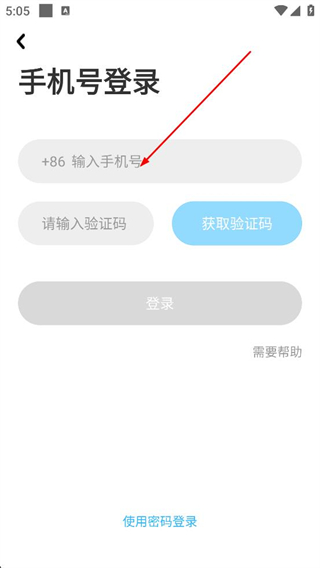 3、在手機號登錄頁面輸入手機號,點擊獲取驗證碼,輸入驗證碼后點擊登錄,即可完成賬號登錄。