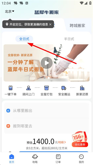 3、選擇日式搬家服務時,可選擇全日式或半日式服務,了解全屋收納、新家還原等服務流程,查看預估價格,進行日式搬家預約。