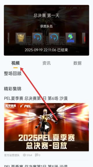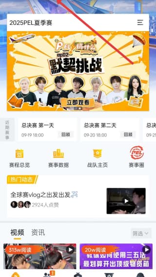 2、進入2025PEL夏季賽頁面,可查看賽事直播、回放和熱門動態,獲取賽事最新信息。