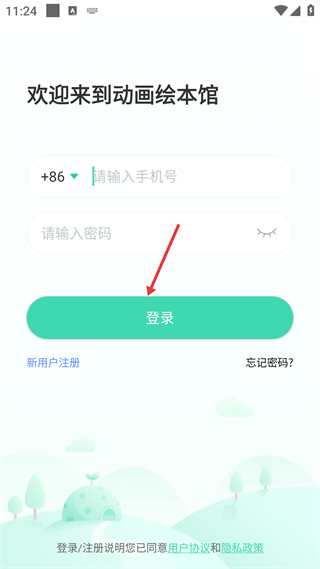 1、進入動畫繪本館的登錄界面,需輸入手機號和密碼,點擊登錄按鈕完成登錄,即可進入繪本館主界面。