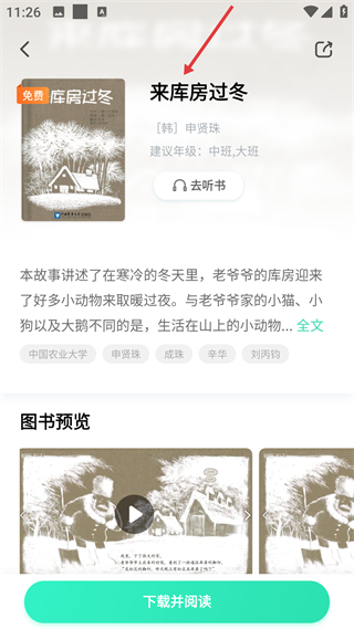 4、進入繪本詳情頁,可查看故事簡介及圖書預覽內容,點擊下載并閱讀按鈕,即可獲取該繪本的閱讀權限。