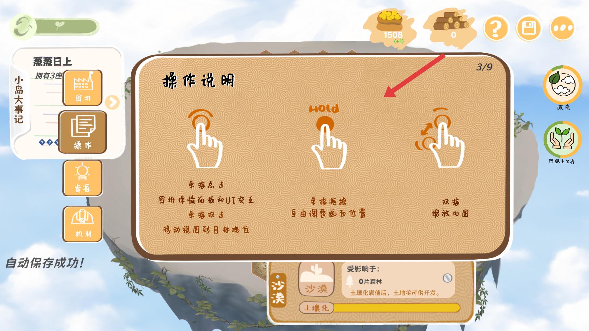 3、數據可視化:碳排放、經濟增速等關鍵指標以動態圖表呈現,歷史數據可回溯對比,環境變化通過色彩漸變系統直觀展現,從翠綠到灰褐的過渡警示生態危機。