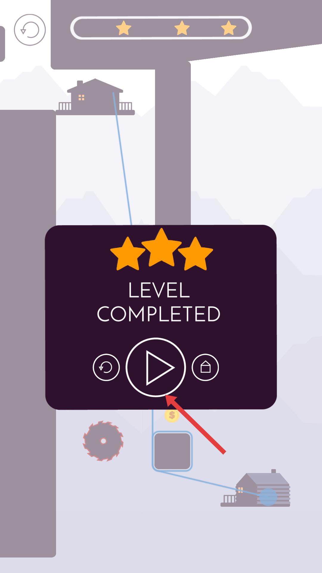 4、成功通關界面顯示關卡完成,若想繼續挑戰下一關,點擊中間的三角形播放按鈕,進入下一個關卡。