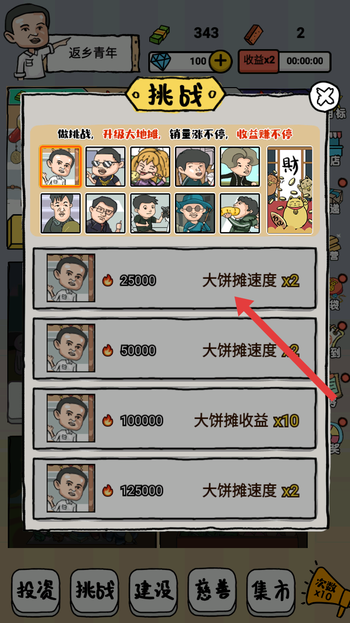 3、挑戰界面里,有針對不同攤位的挑戰任務,完成任務能提升攤位速度、收益等,讓攤位經營更高效。