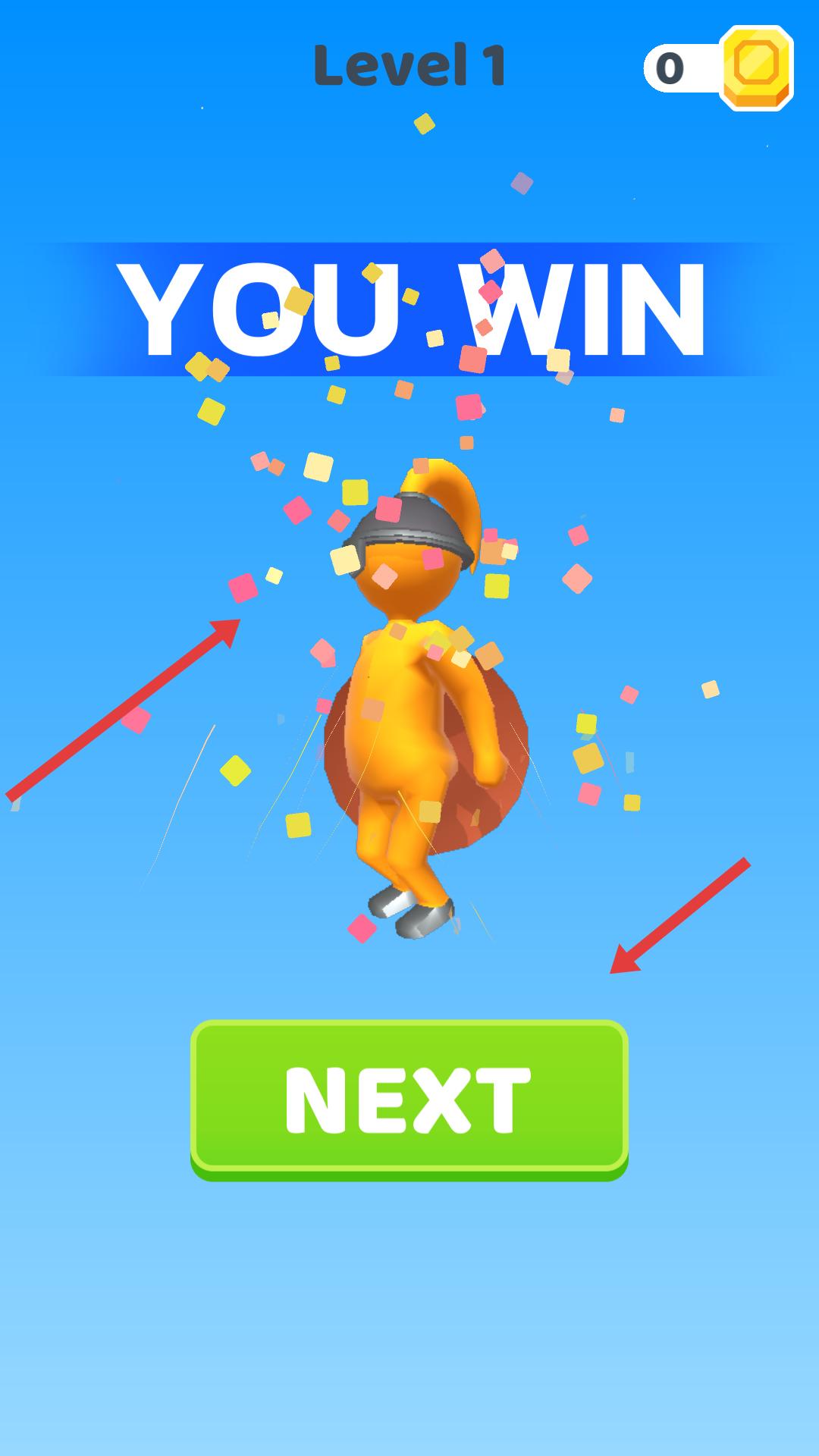 4、成功擊敗所有紅色火柴人后,會顯示YOU WIN的勝利界面,點擊下方綠色的NEXT按鈕,進入下一關繼續挑戰。