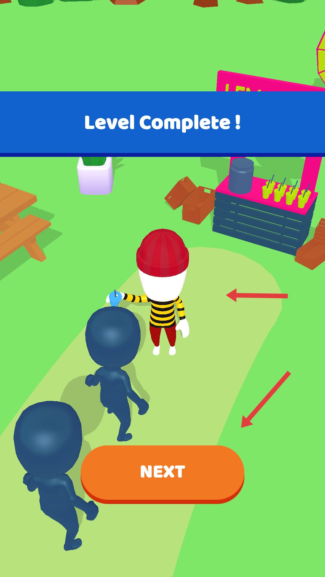 4、成功引導紫色小人到達目標后,會顯示Level Complete,點擊NEXT按鈕,進入下一關繼續挑戰。