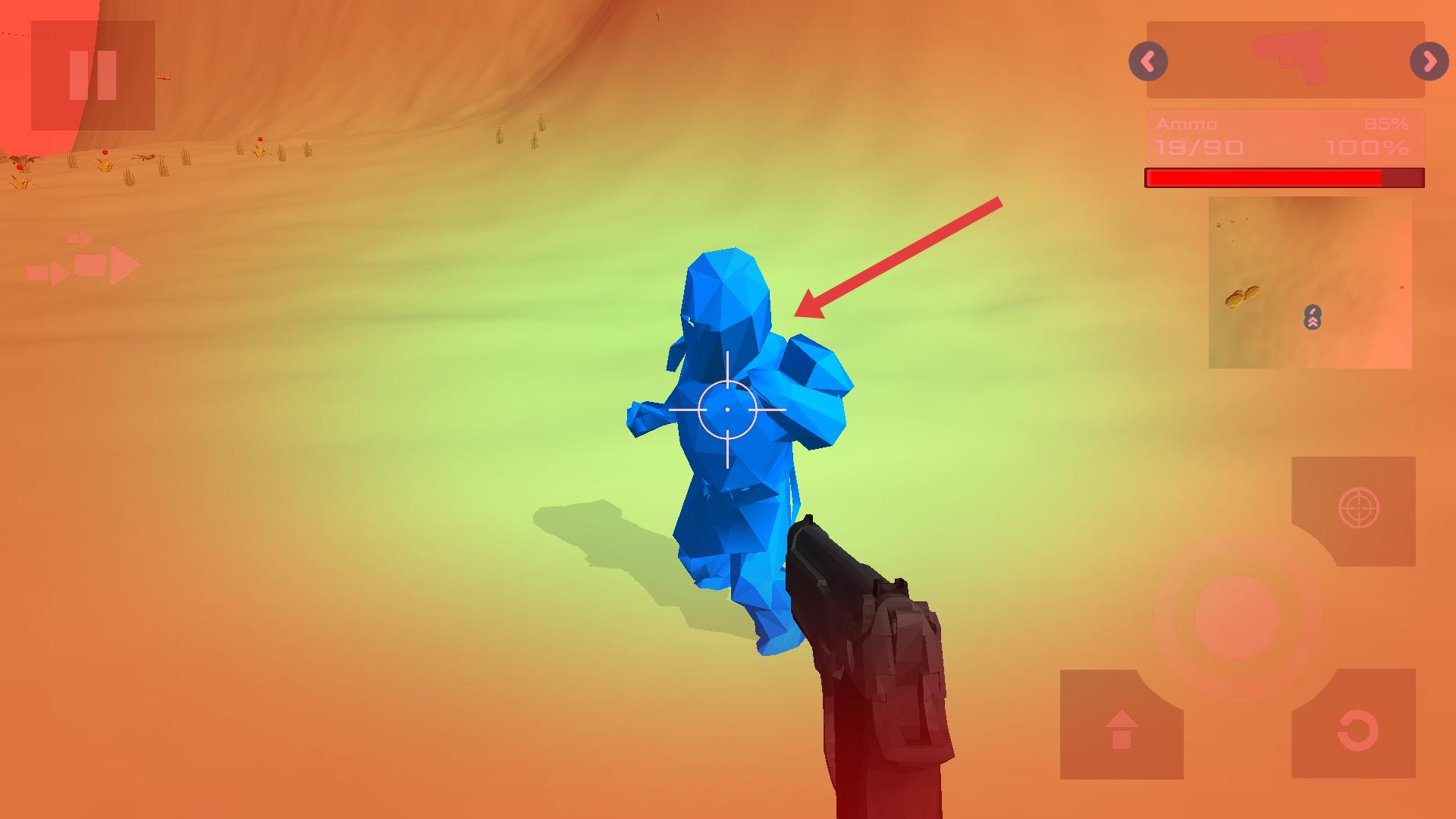 3、遇到藍色敵人時瞄準敵人,利用射擊按鈕發起攻擊,精準打擊可快速消滅敵人,推進戰斗進程。