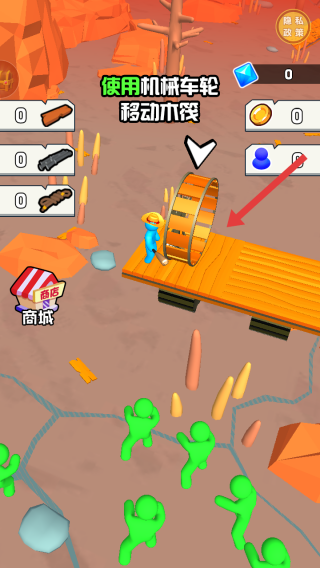 3、然后使用機械車輪,來移動木筏,讓木筏能于場景里行進,前往新的區域。