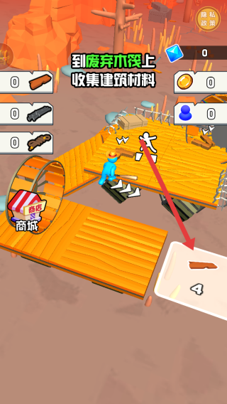 4、接著到廢棄木筏上,繼續收集建筑材料,不斷積累資源,推進木筏建造和冒險進程。