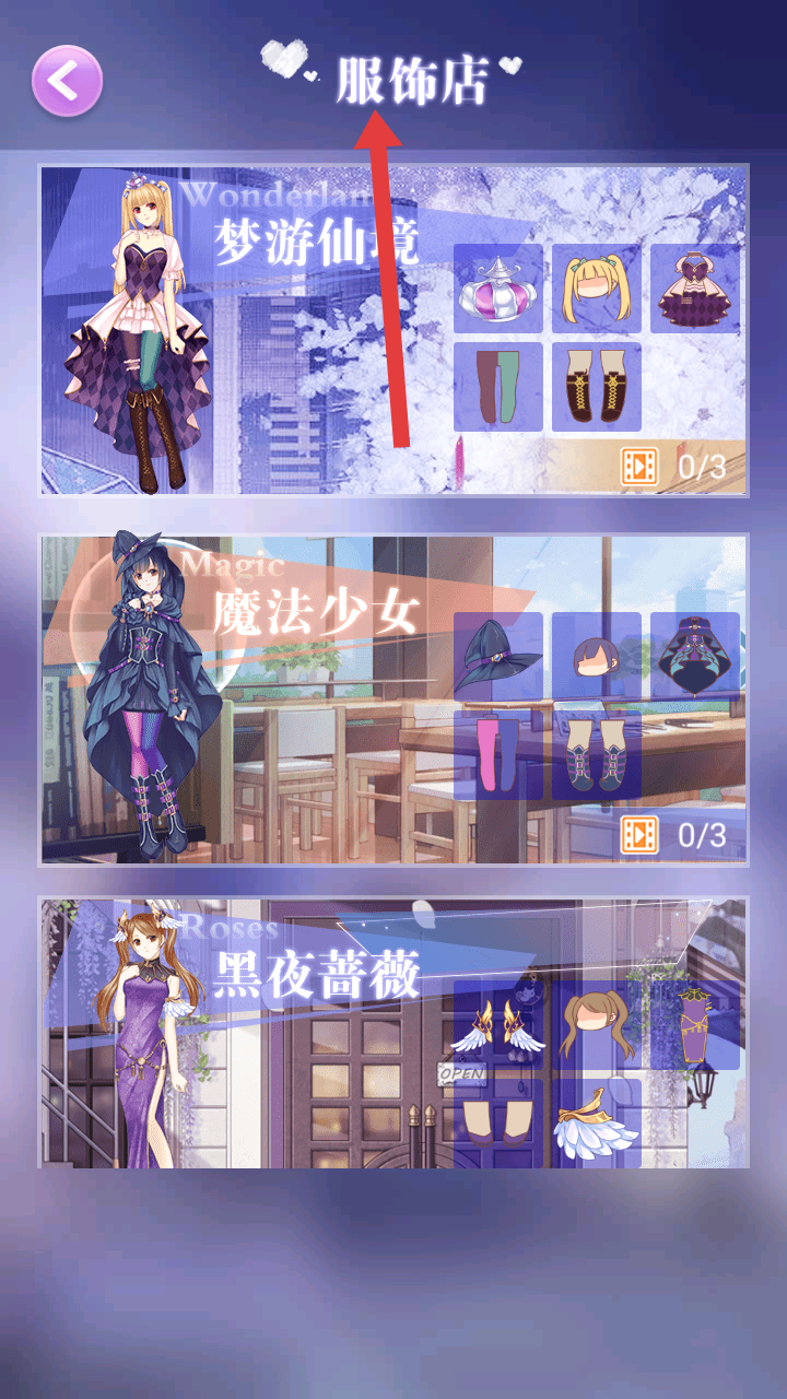 4、進入服飾店,有夢游仙境、魔法少女等不同主題服飾套裝,可挑選喜歡的套裝,獲取新服飾來豐富裝扮。