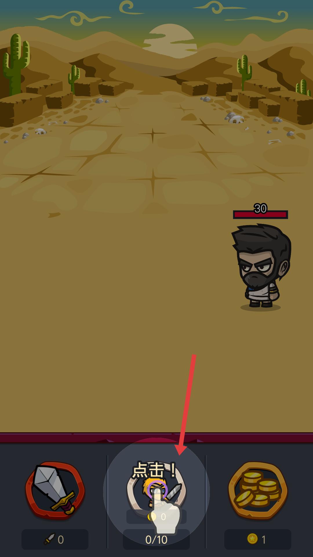 1、點擊下方點擊按鈕,攻擊敵人,積累攻擊次數,注意敵人血量,適時釋放技能。