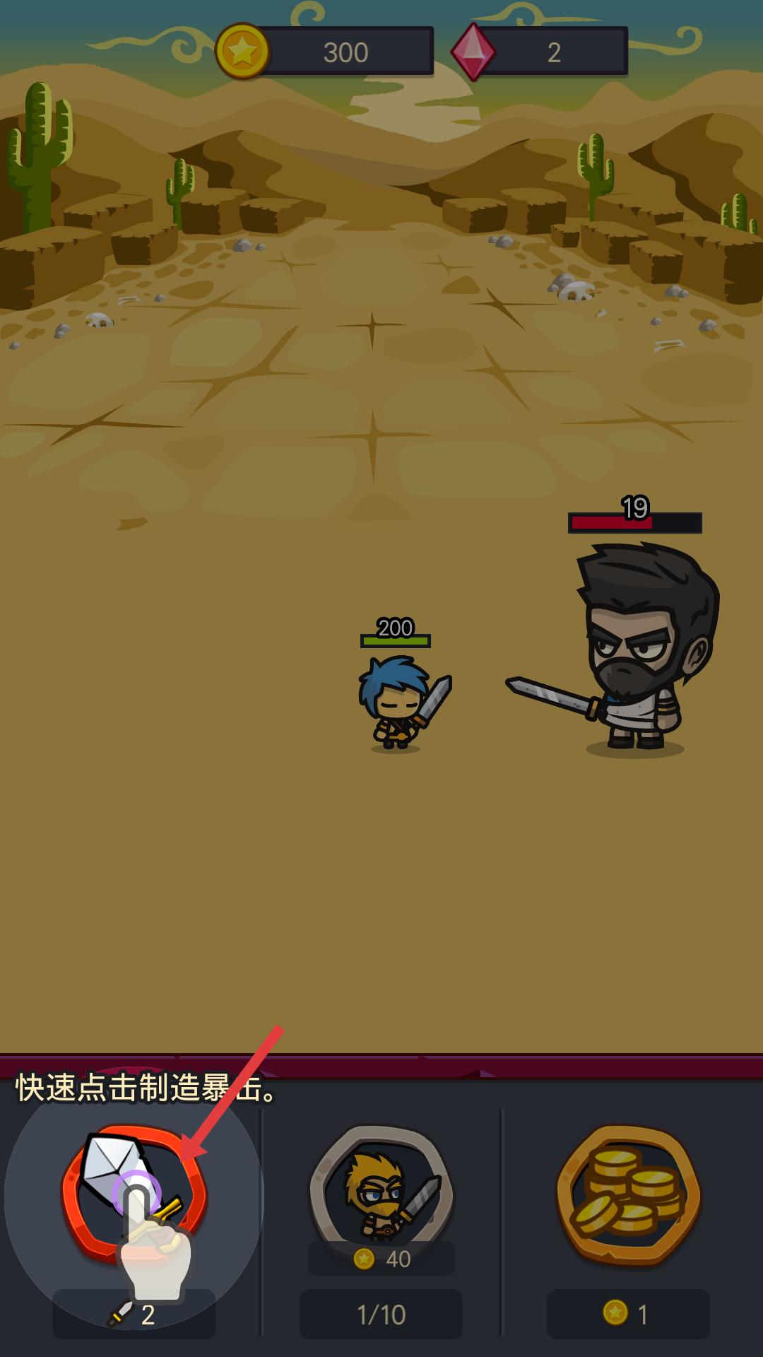 3、戰斗中快速點擊武器圖標制造暴擊,趁敵人血量低時爆發輸出,爭取快速擊敗對手。
