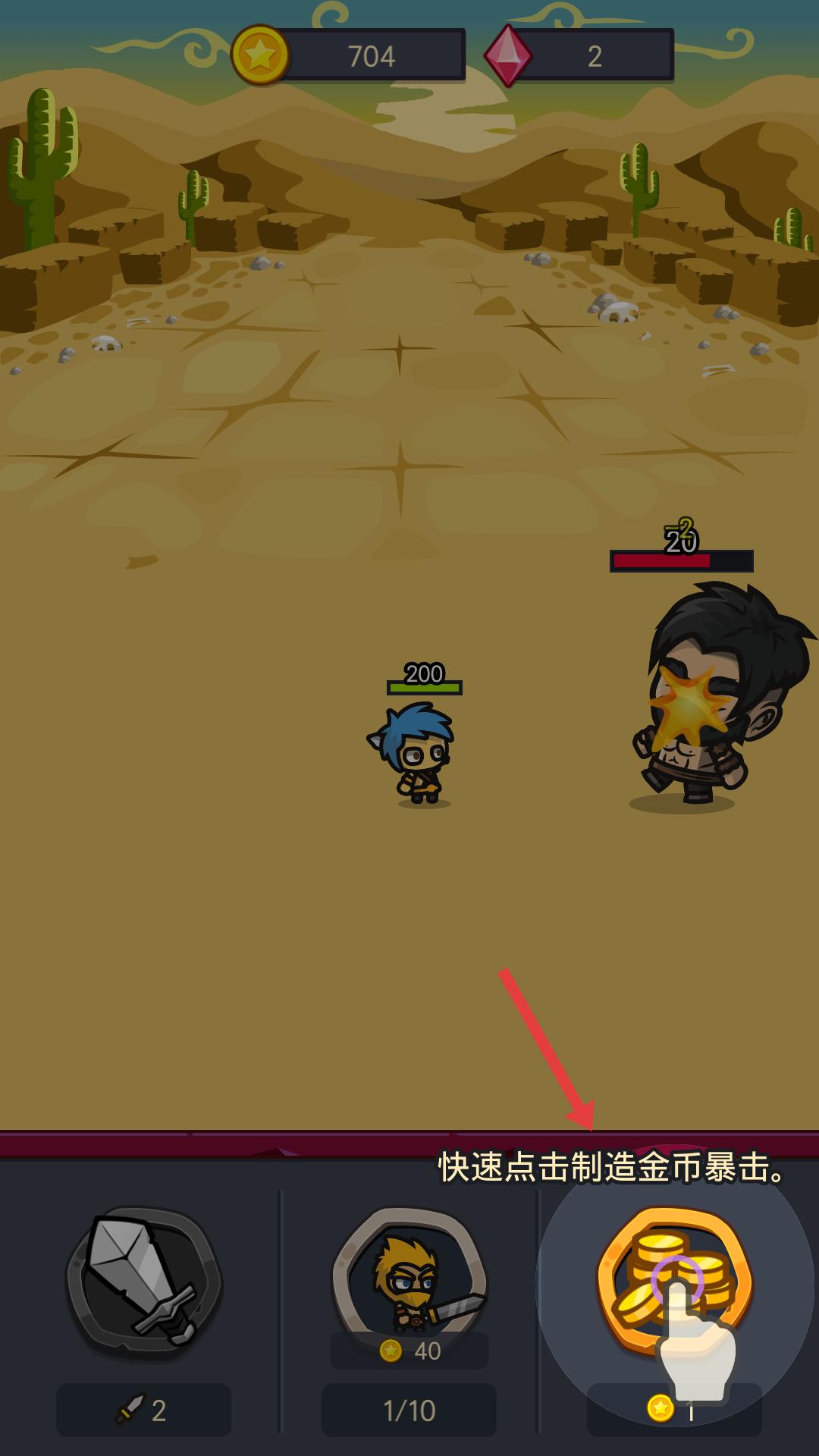 4、出現金幣暴擊提示,快速點擊金幣按鈕,獲取額外金幣,用于升級英雄或購買裝備。