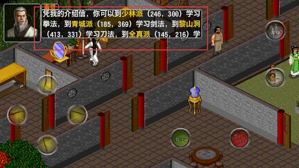 3、在游戲中會得到介紹信,憑借它可到少林派學拳法、青城派學劍法、黎山洞學刀法、全真派學相關武功,提升角色能力。