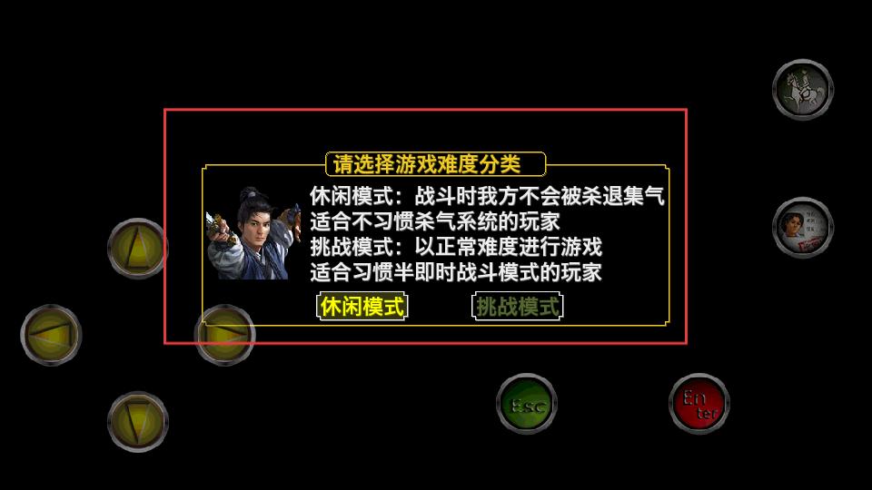 2、選擇游戲難度,休閑模式戰斗時我方不會被殺退集氣,適合不適應殺氣系統的玩家,挑戰模式以正常難度進行,適合習慣半即時戰斗的玩家。