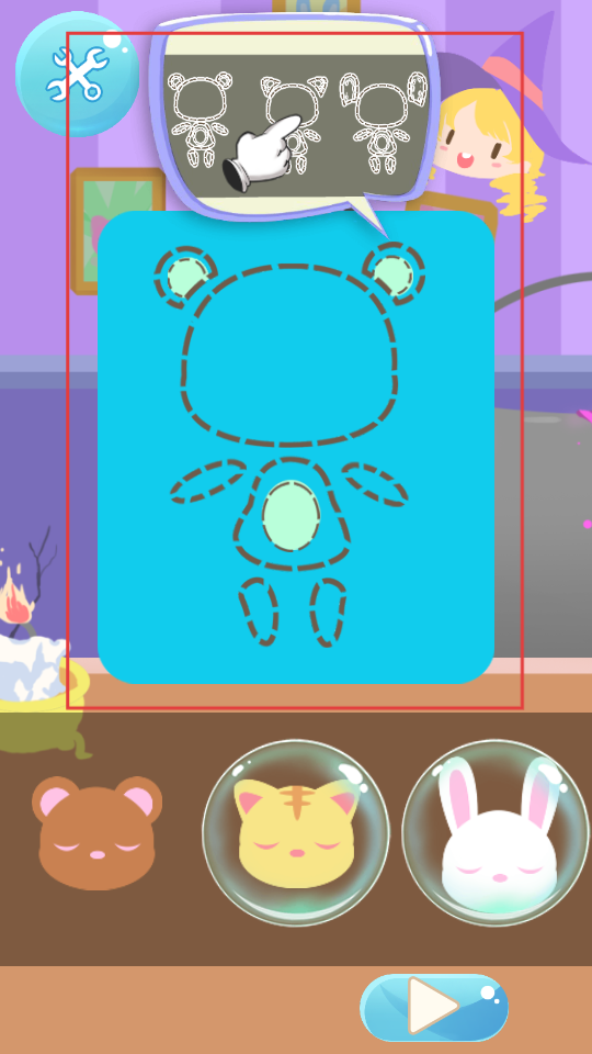 1、點擊播放按鈕,進入游戲,選擇要制作的玩偶樣式,按照提示的輪廓,開始玩偶的制作流程。