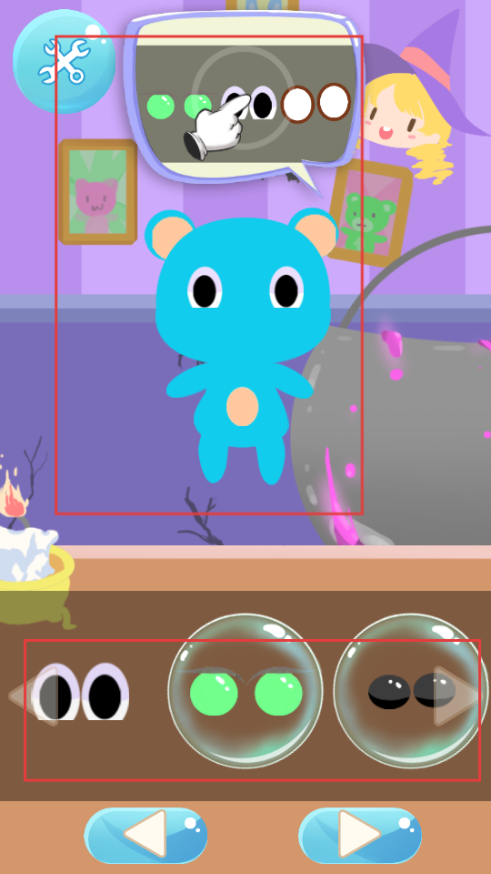 2、根據指引,為玩偶選擇合適的眼睛等部件,精心搭配,讓玩偶的外觀更符合預期。