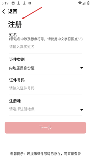 2、注冊界面需填寫真實姓名、身份證號、注冊地,若證件號已存在可直接登錄,引導新用戶完成志愿者身份注冊。