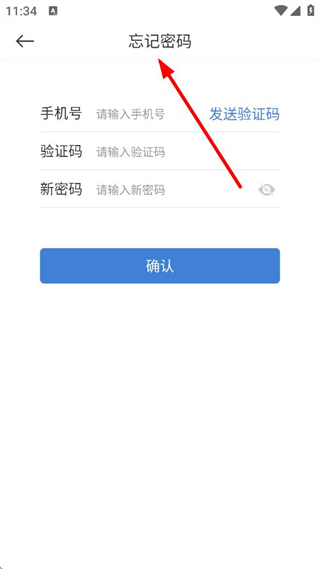 4、若忘記密碼可進入忘記密碼界面,輸入手機號、發送并輸入驗證碼,設置新密碼后點擊確認,即可重置密碼并登錄大大汽修平臺。