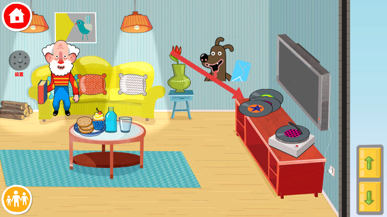 2、來到客廳場景,有沙發、唱片等物品,可選擇唱片播放音樂,營造舒適的休閑氛圍。