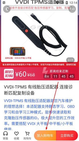 2、在限時搶購頁面選擇一款商品如VVDITPMS適配器,點擊立即搶購進入詳情頁,查看商品的功能介紹及適用設備等內容。