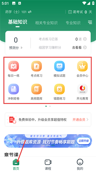 2、該界面是應用核心功能區,聚焦藥學士考試,提供多類刷題模塊,按科目分類內容,適配備考全流程練習需求。