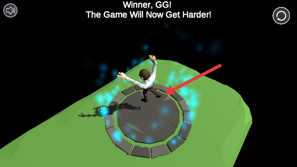 4、成功到達帶有藍色光芒的圓形區域,角色會做出勝利動作,玩家可以點擊右上角繼續通過,后續游戲難度也會提升,為玩家帶來挑戰的趣味。