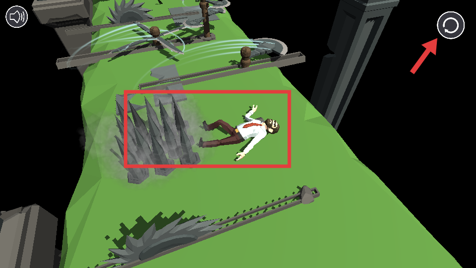 3、若不慎觸發陷阱導致角色倒下,此時點擊右上角的重置按鈕,就能重新開始當前關卡繼續挑戰。