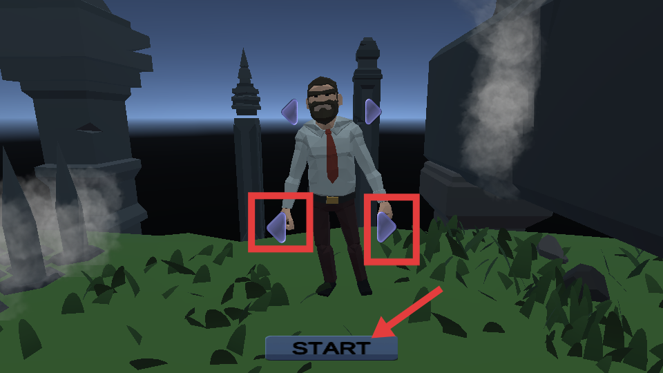 1、玩家在游戲開始前,可通過角色身旁的紫色箭頭按鈕選擇人物,調整好后點擊START按鈕,即可開啟游戲挑戰。