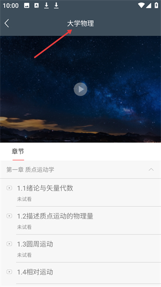 2、大學物理板塊有質點運動學章節,涵蓋緒論與矢量代數、圓周運動等知識點,提供系統物理知識學習。