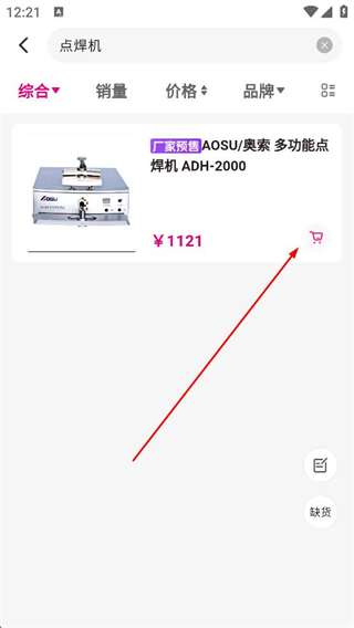 4、在商品詳情頁,查看點焊機等商品的信息和價格,點擊購物車按鈕,將商品加入購物車準備采購。