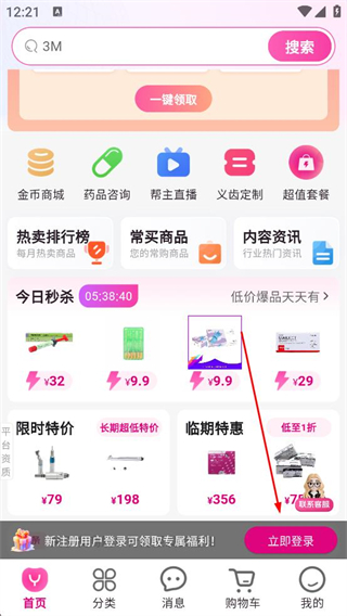 1、進入首頁瀏覽熱賣商品和限時特價內容,點擊立即登錄按鈕,進入牙醫幫用戶登錄頁面。