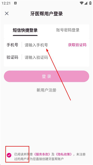 2、在登錄頁面選擇短信快捷登錄,輸入手機號獲取驗證碼,勾選協議后點擊登錄按鈕,完成賬號登錄。