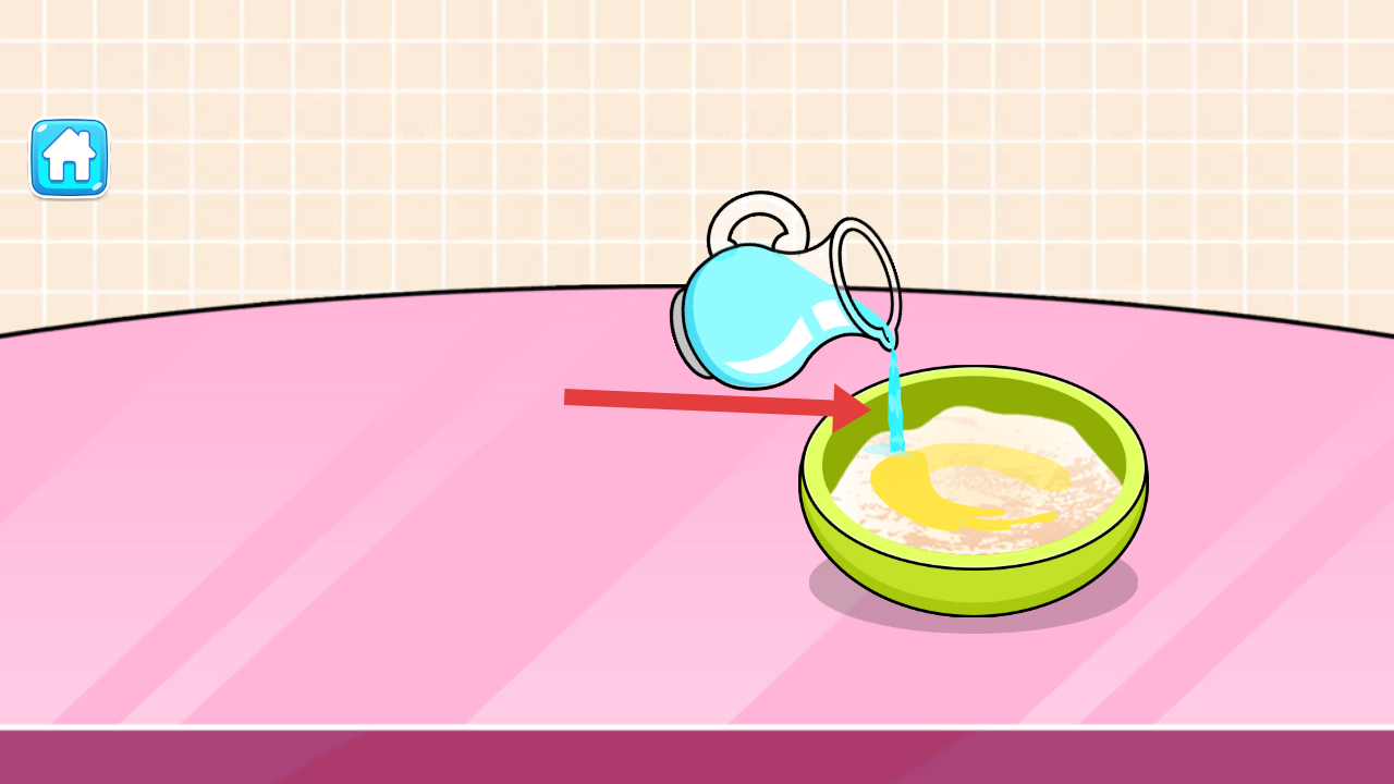 2、往裝有面粉的碗里倒入水等液體,進行攪拌等操作,制作面團相關的前期準備。